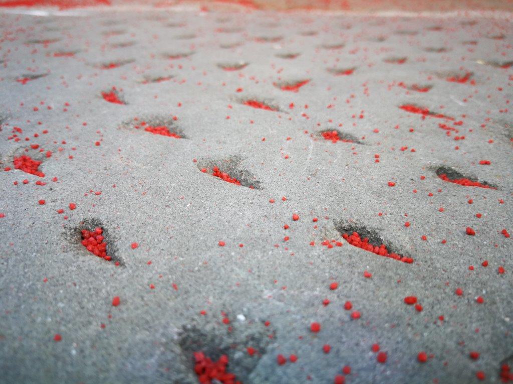 Le foto in mostra raccontano la terza puntata della performance in cui le polveri rosse sono andate a finire ovunque perché il materiale vola ponendo in evidenza quello che noi non vedremmo normalmente. La casualità ha un ruolo in tutto questo. La natura è in continuo movimento.Le fotografie presentate a Imola sono l’esito della performance non la documentazione della stessa. Le persone non appaiono, è solo mare, scorci dettagliati, trasformazione del paesaggio. È l’idea che prende forma, il concetto che si fa immagine. Ancora Madesani: «Il cuore della sua ricerca è l’uomo, il suo egoismo, la sua indifferenza nei confrontidell’altro, del circostante. Una ricerca la sua, in cui attraverso la bellezza si giunge al dolore, alla sofferenza. Una presa di coscienza civile e morale alla quale bisognerebbe prestare attenzione».