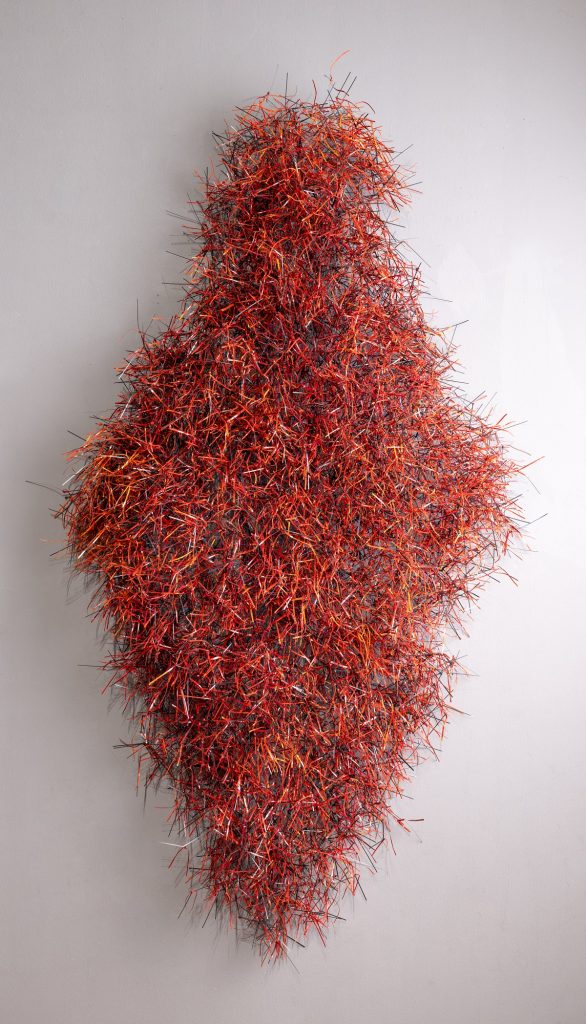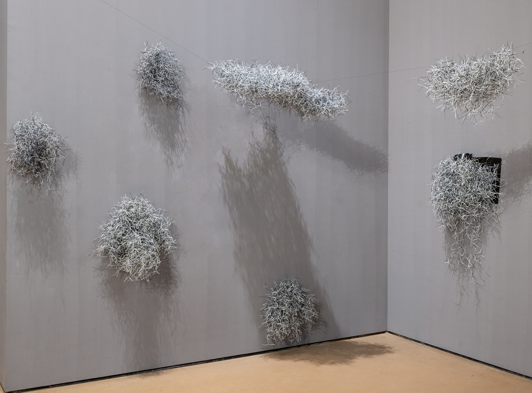 In questo contesto si inserisce GARGOFANIE, un’indagine poetica e materica sulla soglia, sul confine tra opposti – pieno e vuoto, interiore ed esteriore, concreto e immaginario. Il titolo richiama le garguglie medievali: creature liminari nate per espellere l’acqua dagli edifici, divenute figure mitologiche a metà tra funzione e mistero. Come le garguglie, le opere di Levo Rosenberg emergono da una tensione tra distruzione e rigenerazione, realizzate a partire da lastre radiografiche decostruite e rielaborate in filamenti che diventano trama, immagine e linguaggio.