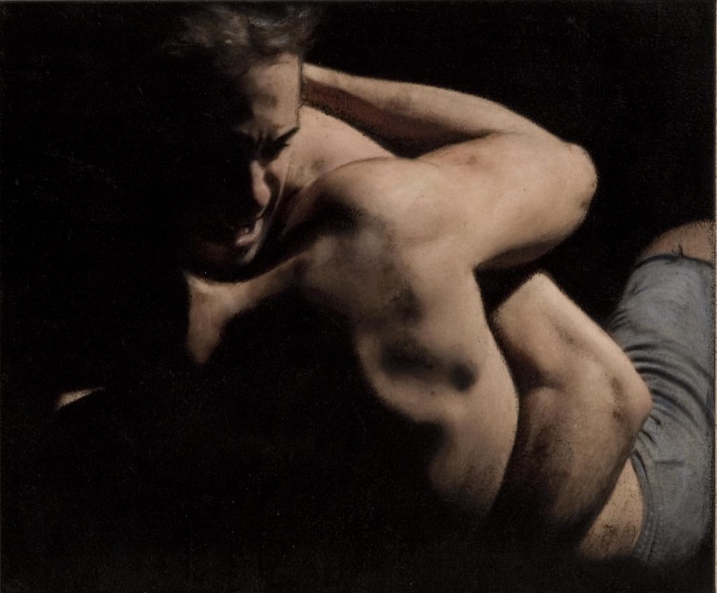 Gli antichi romani scioglievano i pigmenti di colore nella cera e poi applicavano questa mistura all'intonaco, Chiodi reinventa questo procedimento utilizzando come base la fotografia ed il risultato è assolutamente d'effetto. L'immagine fotografica dona all'opera quella minuzia di dettagli che ci riporta alla pittura antica, ma la materia “cereo-pittorica” ne conferisce una densità e uno spessore nuovo. Corpi ed oggetti sembrano immersi in un magma oscuro dal quale cercano di riemergere, dei novelli “Prigioni” che lottano per uscire dal buio.
