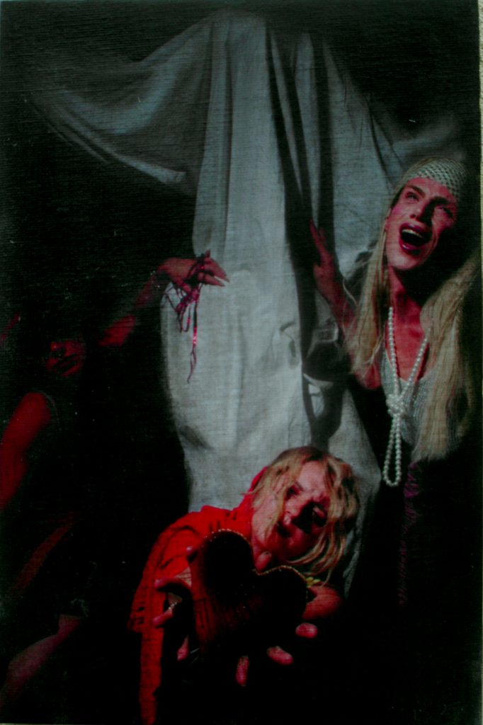 Partiamo dalla tecnica: non è fotografia, né pittura, ma l'una e l'altra insieme, un unicum ottenuto attraverso una rivisitazione di una procedura antica: l'encausto.
