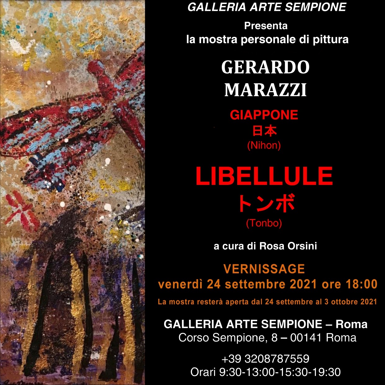 Gerardo Marazzi presenta alla Galleria Arte Sempione di Roma la personale di pittura “Giappone Libellule”. Opere pittoriche realizzate negli ultimi anni dominate da vibrazioni cromatiche ed evanescenze, evocative della memoria del luogo frutto di viaggi nella terra nipponica intrapresi dall’artista.