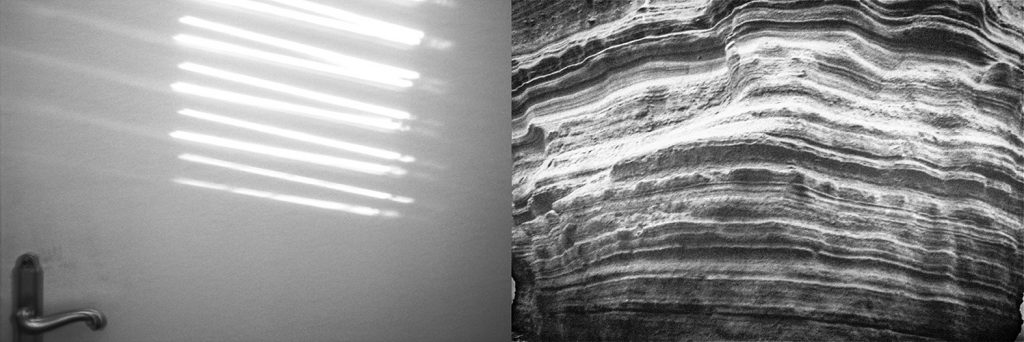 Le immagini del racconto si alternano tra di loro in coppia affiancate (che chiamo dilogie) in un movimento che richiama l'atto dell'inspirazione-espirazione, generando in questo in/out un ritmo narrativo nel quale ogni singola immagine cerca di completare l'altra, per affinità compositiva e musicale, in un'unica descrizione dinamica. Gli altri singoli scatti si integrano nella successione delle dilogie nella struttura del diario.
