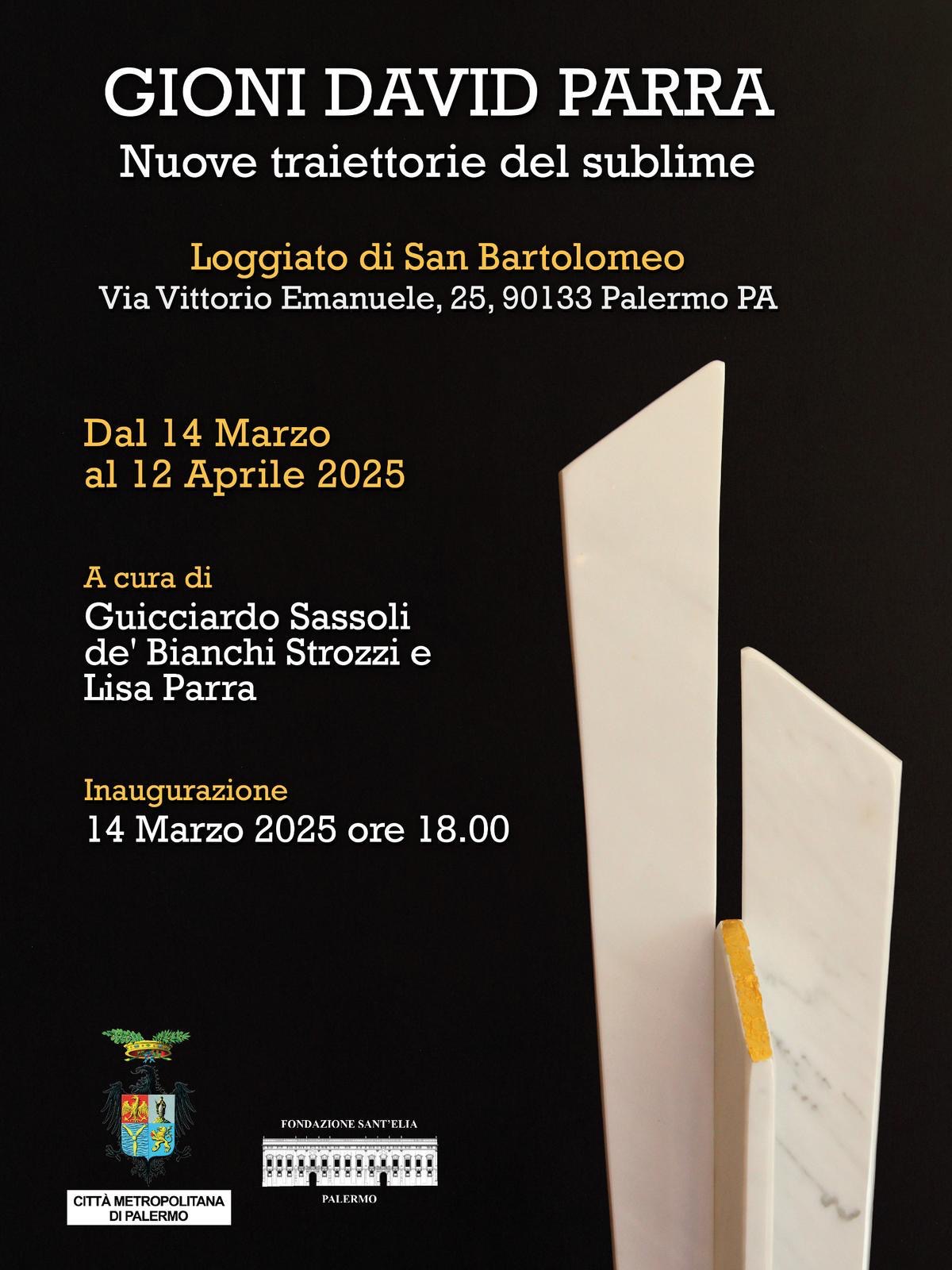 Dal 14 marzo al 12 aprile 2025 al Loggiato di San Bartolomeo, sarà presentata la personale dello scultore Gioni David Parra dal titolo “Gioni David Parra. Nuove traiettorie del sublime” a cura di Guicciardo Sassoli de’ Bianchi Strozzi e Lisa Parra.