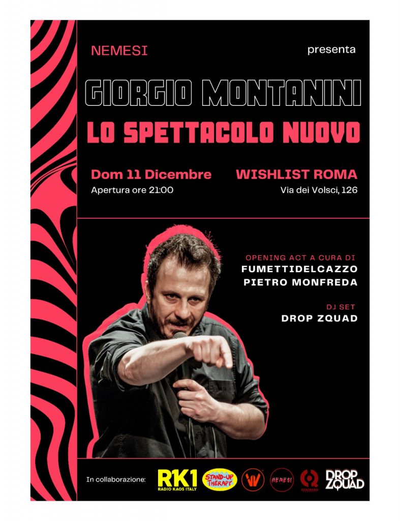 l’imperatore GIORGIO MONTANINI si esibirà al Wishlist Club di Roma con il suo ultimo spettacolo di stand-up comedy dal titolo “Lo Spettacolo Nuovo”