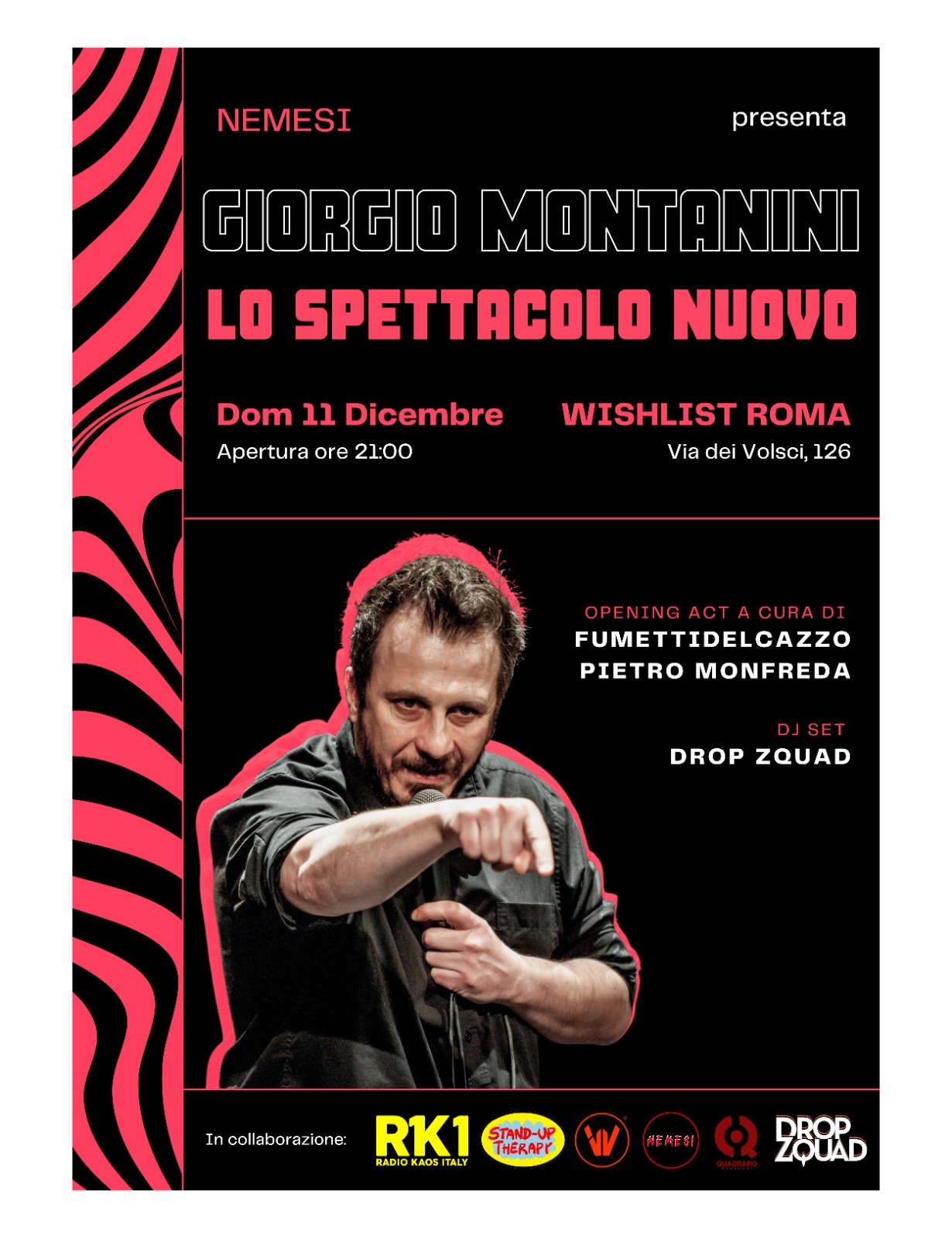 Il collettivo di stand-up comedy della capitale NEMESI ha il piacere di presentare insieme alla web radio più libera e Kaotica del mondo Radio Kaos Italy accompagnati dalle partnership di Welcome to favelas e Quadraro Basement l’evento dell’anno:
