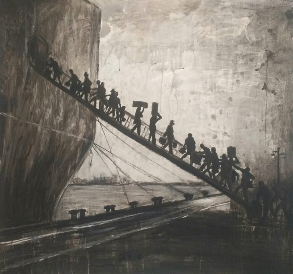 Una mostra la cui genesi è iniziata dal recupero “in rete” di immagini, documenti, fotografie e cartoline capaci di condensare il senso di storie tanto intense quanto drammatiche: la ressa sui moli, la salita sulle navi con valigie enormi e pesanti caricate a fatica sulle spalle, gli addii, il grido “l’America!” e il saluto alla Statua della Libertà, l’attesa dello sbarco verso un mondo sconosciuto.