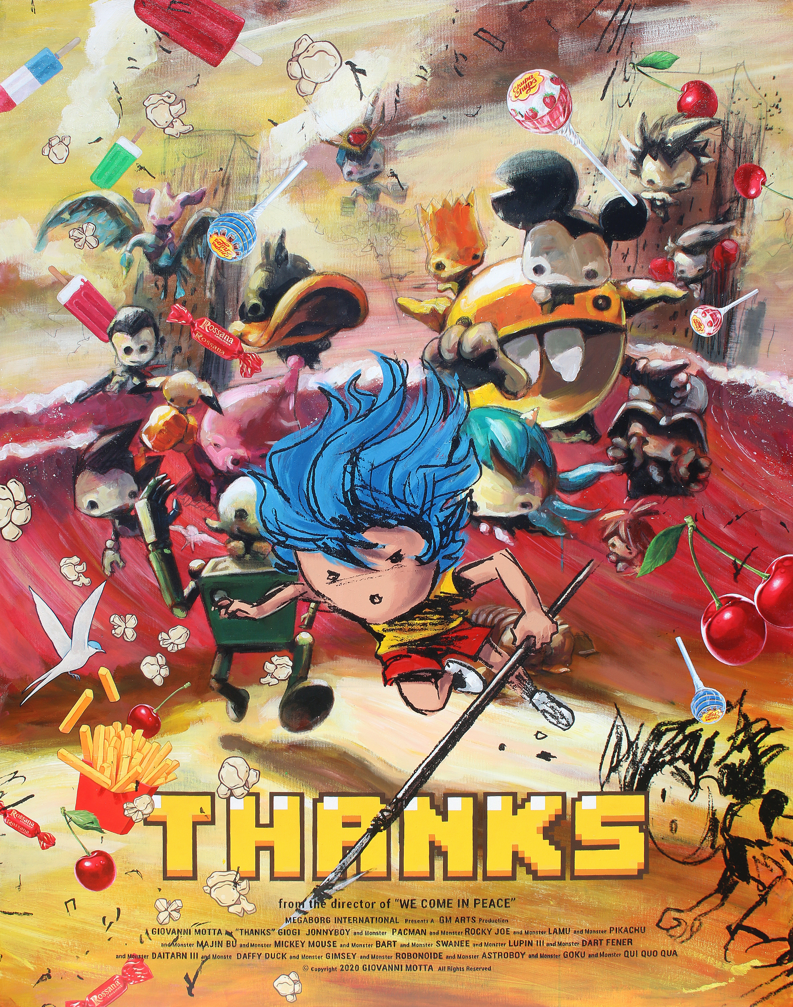 THANKS è, infatti, un ringraziamento ai creatori di quegli stupefacenti personaggi originali che Motta recupera non tanto nella forma o nell’aspetto, ma nel loro contenuto lirico ed emotivo, capace di evocare e di far riaffiorare nel presente le potenti emozioni vissute durante l’infanzia.