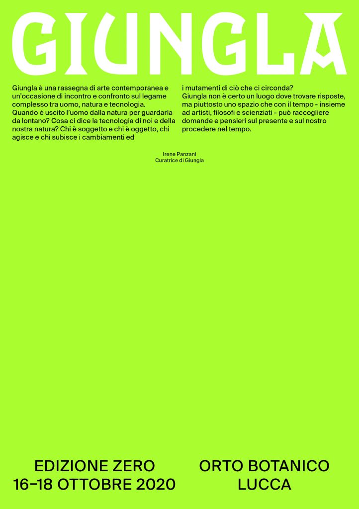 Giungla è una rassegna di arte contemporanea e un’occasione di incontro e confronto sul legame complesso tra uomo, natura e tecnologia. Esposizioni, incontri e laboratori. Dal 16 al 18 ottobre all'interno dell'Orto Botanico di Lucca.