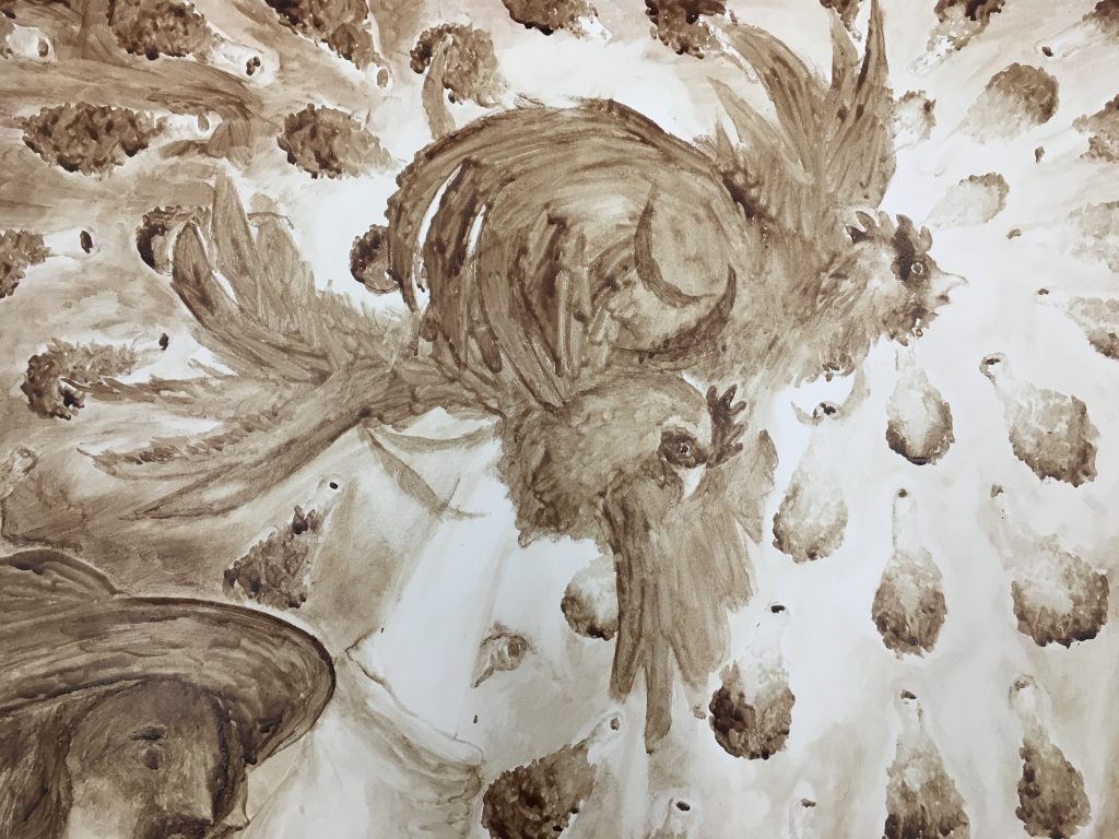 Per la sua prima mostra personale alla Galleria Michela Rizzo Giuseppe Abate presenta un progetto sul pollo. Utilizzando materiali derivati dagli scarti della lavorazione del pollame in ambito alimentare quali ossa, sangue, gusci d’uovo e altro, l’artista propone un corpus di opere inedite che riflettono sulla società del consumo.