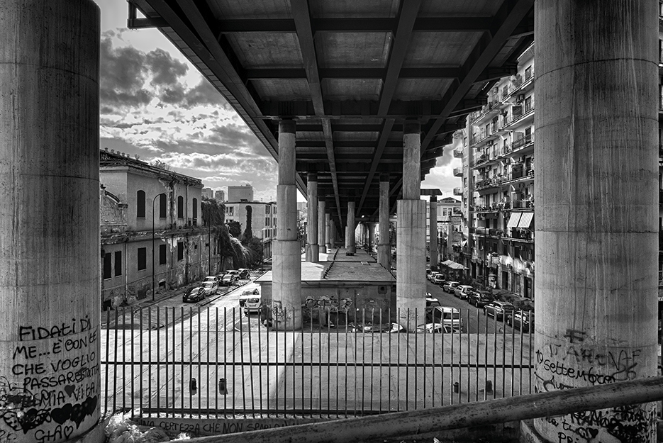 “Lo scenario cittadino crea dipendenza e abitudine, scandisce i nostri tempi, li modula, li plasma. Questi scatti recenti, insieme alle mie ricerche sulle aree industriali e periferiche, sono il mio contributo a questa stimolante indagine a quattro mani, andando ad inserirsi, come ulteriore tassello, nel quadro delle mie visioni urbane”.