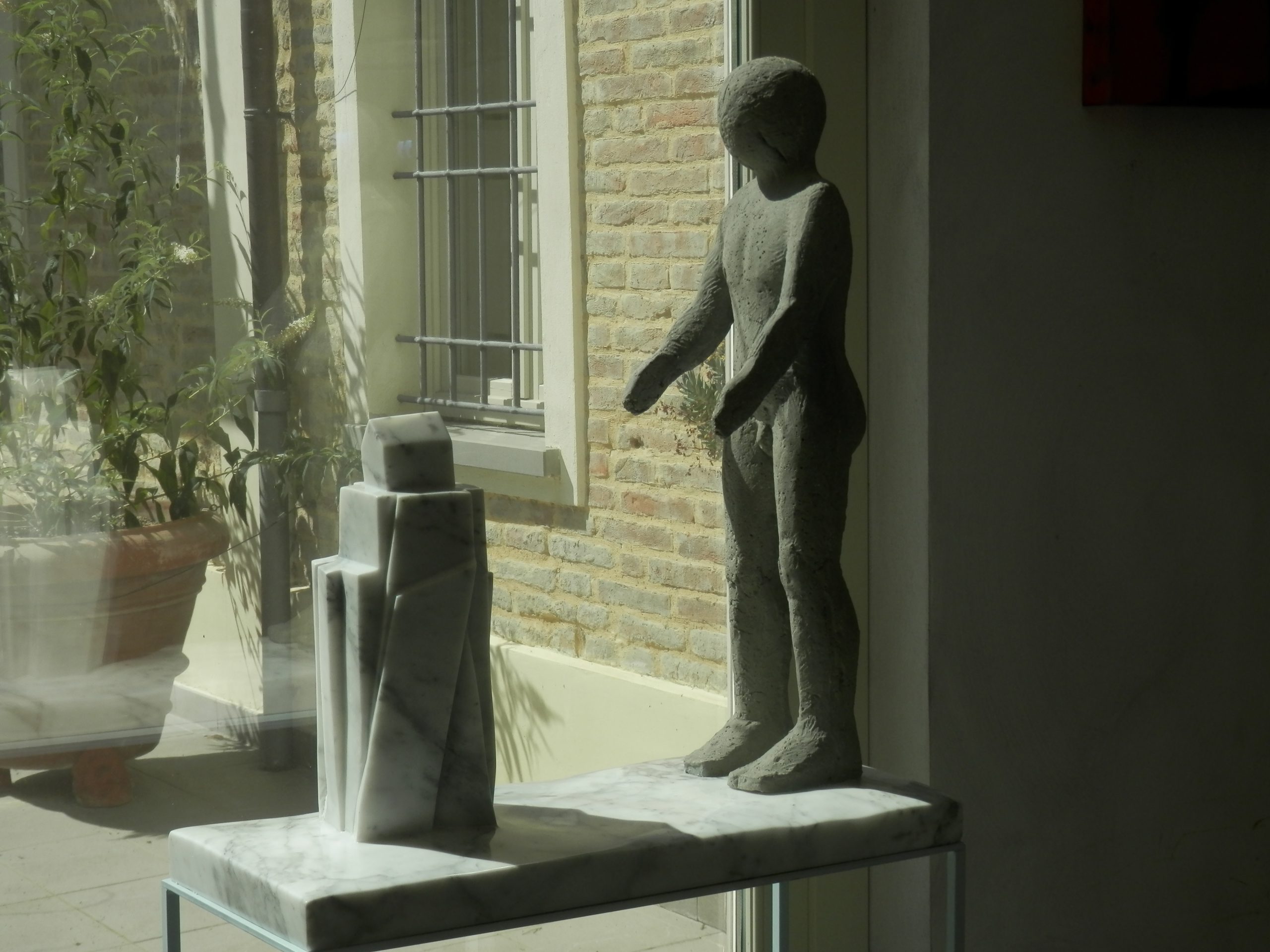 Sarà esposto un importante gruppo di opere, di cui 10 sculture di grande formato posizionate nel giardino e quattro lamiere di ferro, che testimoniano il dialogo continuo e fecondo tra pittura e scultura dell’artista.