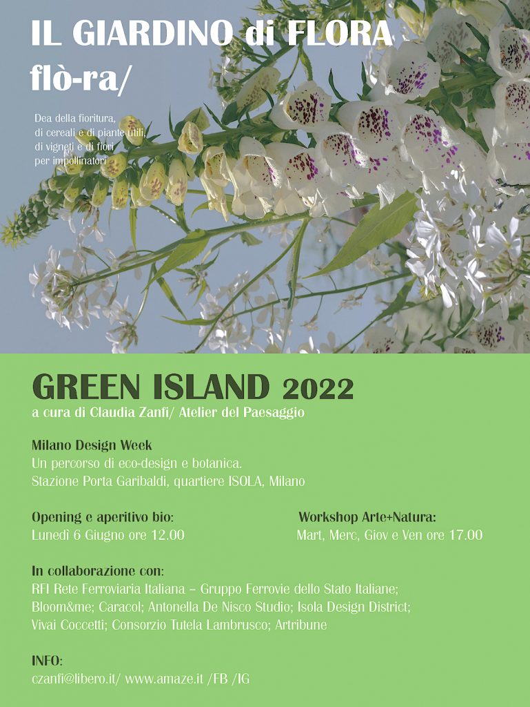 Un originale percorso di eco-design e botanica, per la 20° edizione di Green Island, durante Milano Design Week (6-12 Giugno 2022). Anniversario importante, per il programma internazionale Green Island, da sempre attivo nelle zone in forte espansione culturale e urbana. In questa edizione sarà realizzata l’installazione inedita di un giardino fiorito, dove arte, eco-design, artigianato sono messi in dialogo appositamente per l’Atrio della Stazione Porta Garibaldi, Zona Isola Milano.