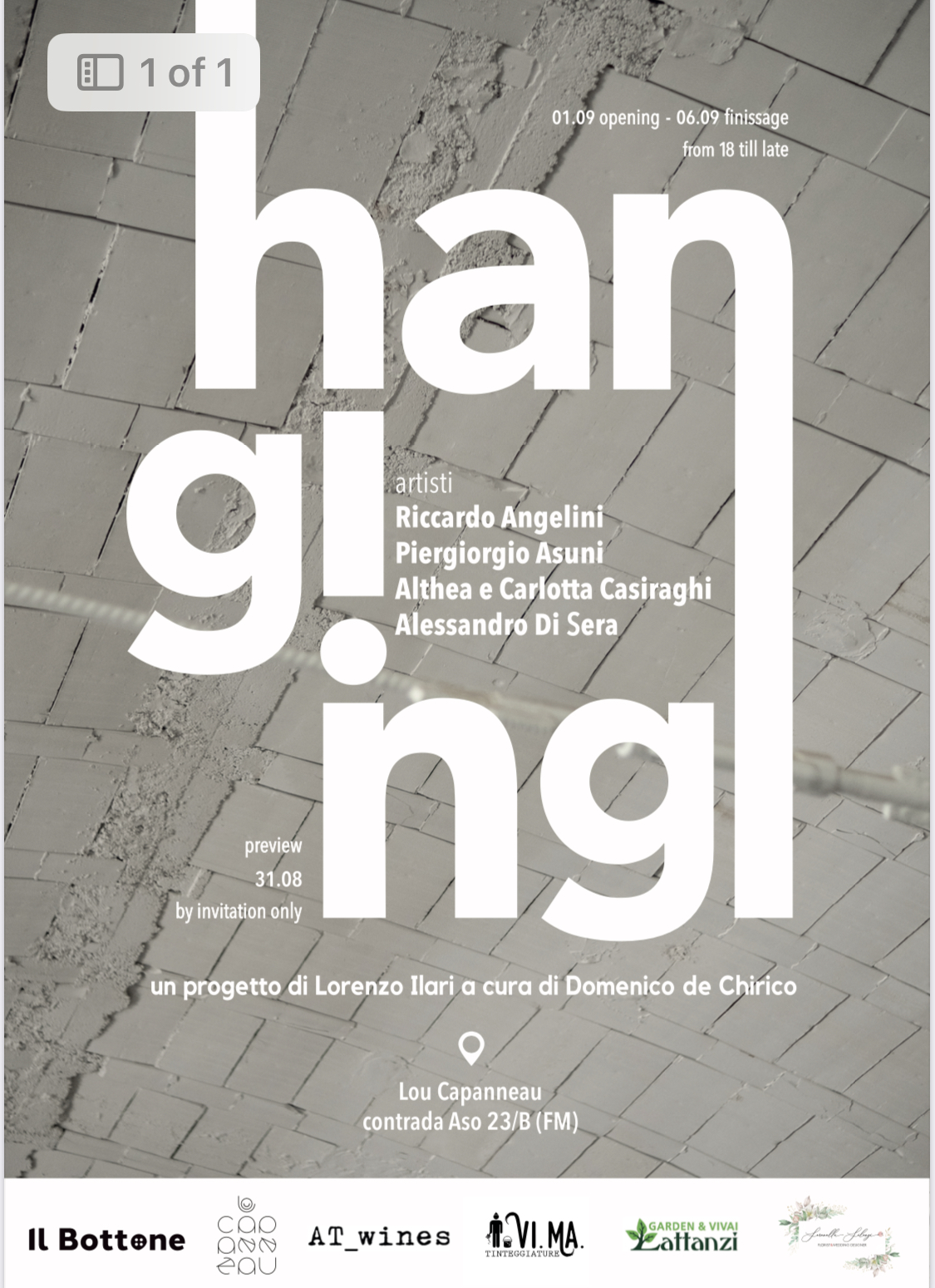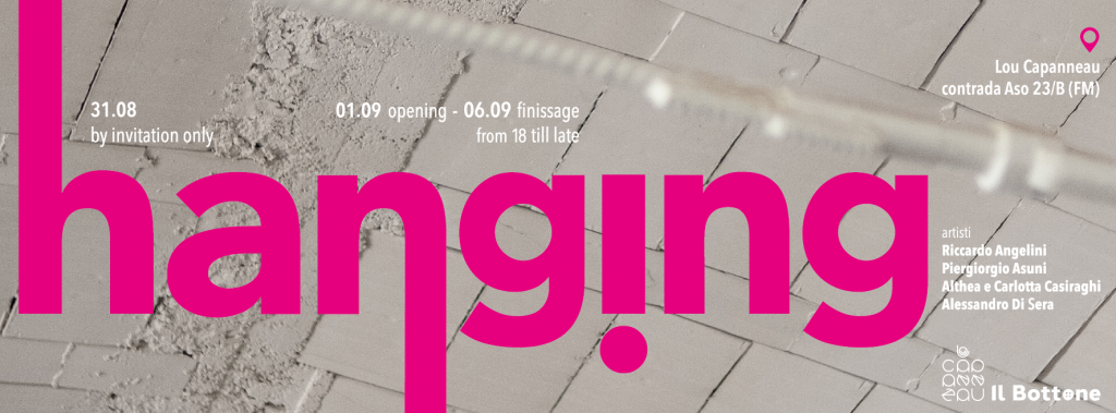 L'associazione culturale/filantropica Il Bottone è lieta di annunciare HANGING: mostra-evento curata da Domenico de Chirico, della serie itinerante CUTTING ART. Direttamente nell'atelier/studio Lou Capanneau di: Riccardo Angelini, Piergiorgio Asuni, Alessandro Di Sera e Casiraw.