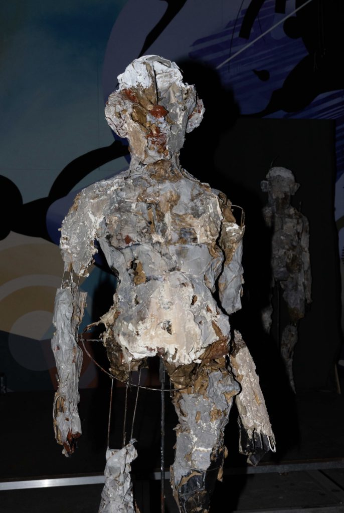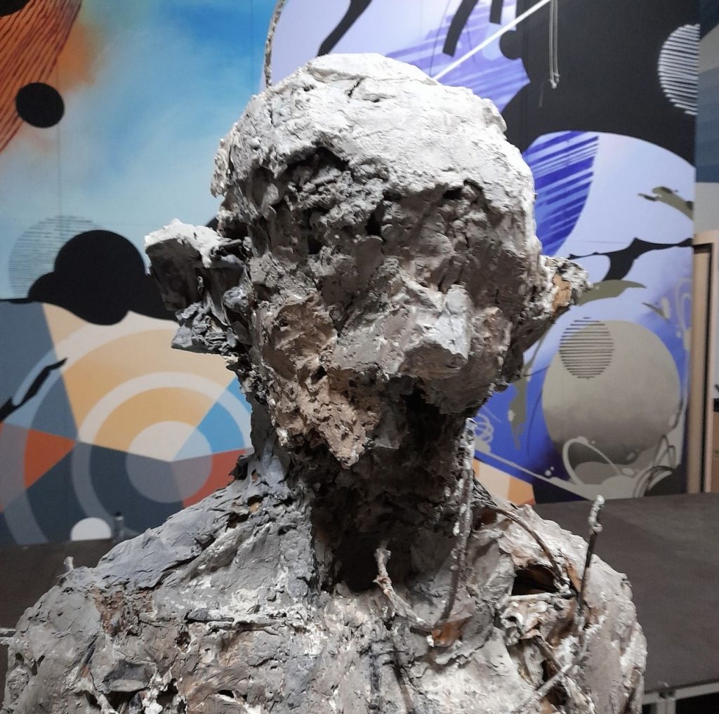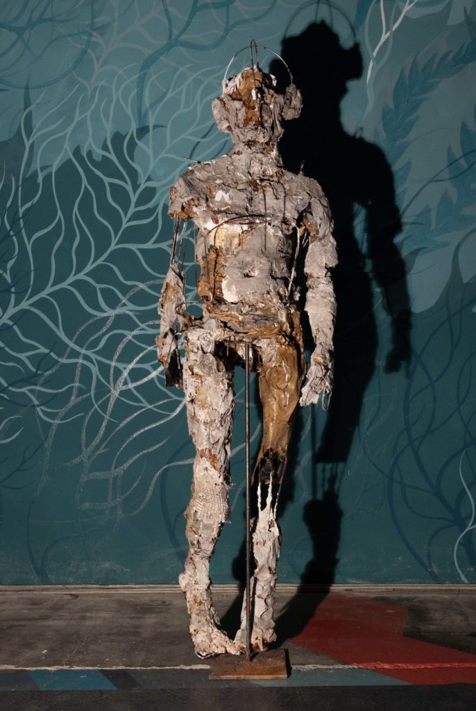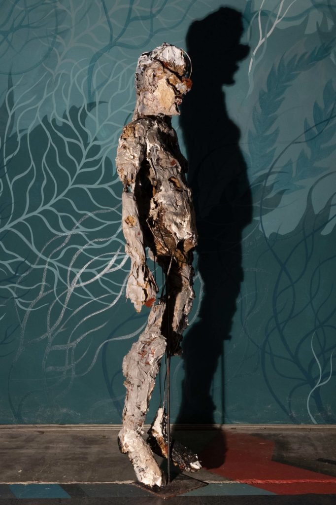 L’esposizione si compone di tre grandi sculture mai esposte dall’artista e dunque realizzate appositamente per gli imponenti spazi di Rosso Tiepido, e otto dipinti installati per l’occasione su cavalletti rivestiti in un elegante velluto colorato: tale originale allestimento si rende necessario in quanto Rosso Tiepido presenta al suo interno diversi murales di alcuni dei più importanti street artist italiani e internazionali quali Tellas, Moneyless, Giorgio Bartocci, Sten&Lex, Aris, Awer, Ciredz, MP5, Martina Merlini e Gola Hundun, i quali a partire dal 2018 hanno reso questo suggestivo spazio industriale una “Cappella degli Scrovegni della street art”.
