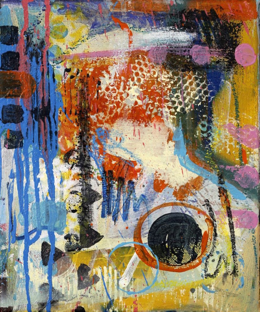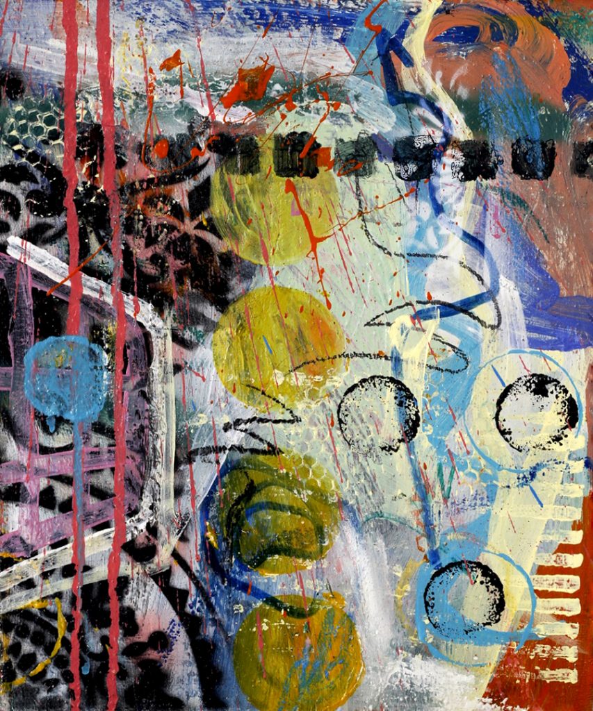 La pratica gestuale si concreta in una fitta trama di tratti colorati che percorre la tela nella sua interezza con frequenza e intensità variabili, generando una dinamicità interna. Segni e linee si dipanano su differenti piani, creando diversi flussi di movimenti carichi di energia.