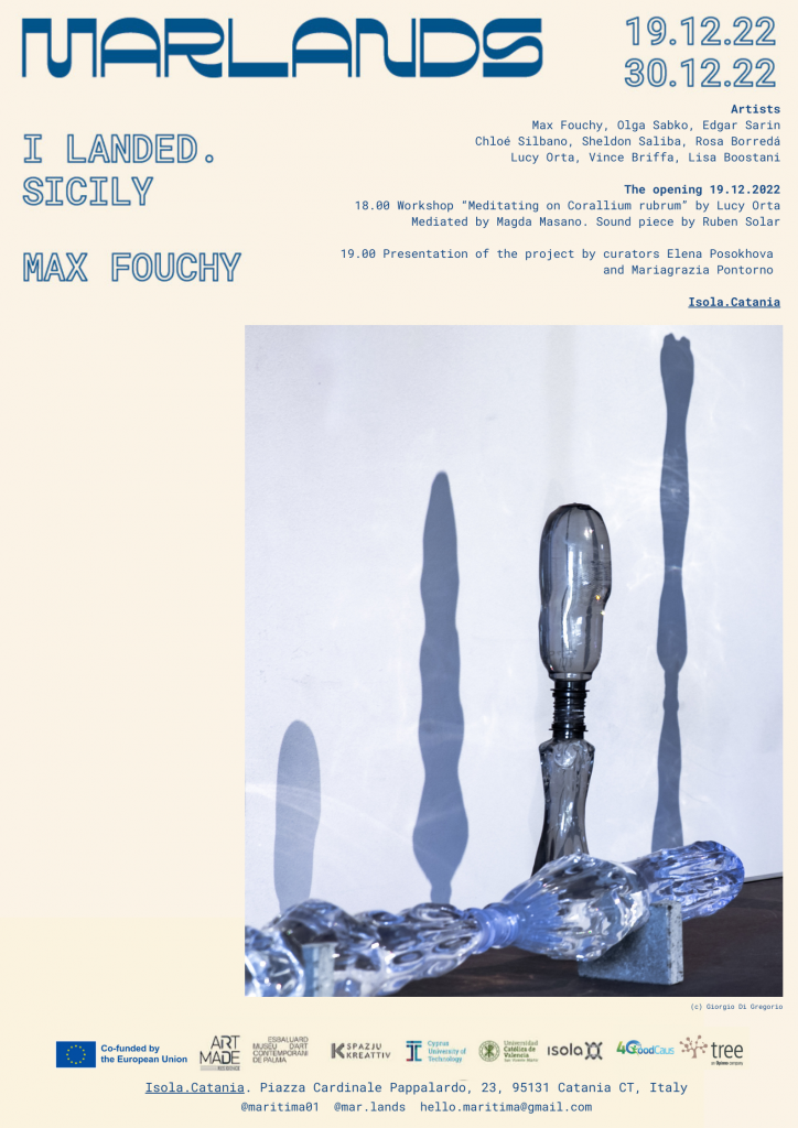 MARLANDS è un progetto di arte contemporanea che fa appello ad artisti e ricercatori per lavorare insieme sull’arte, il patrimonio culturale e le sfide ecologiche delle isole del Mediterraneo, al fine di promuoverne un’armoniosa convivenza. In mostra, oltre all’arte di Max Fouchy, saranno esposte anche le opere degli altri artisti internazionali coinvolti nel progetto: Olga Sabko, Edgar Sarin, Chloé Silbano, Sheldon Saliba, Rosa Borredá, Lucy Orta, Vince Briffa, Lisa Boostani.