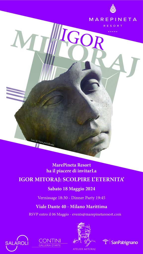 La mostra ospita una selezione di opere in bronzo: Mitoraj unisce infatti la tradizione classico-antica alla contemporaneità, con la creazione di figure lesionate, corpi senza testa e visi dormienti, organizzata da MarePineta Resort in collaborazione con la Galleria d’Arte Contini e l’Atelier Mitoraj