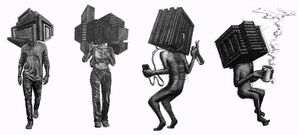 Il risultato finale è un insieme di disegni meticolosi e installazioni fisiche che rappresentano la risposta personale dell’artista alle tensioni che abitano la metropoli e allo spazio che lo circonda.