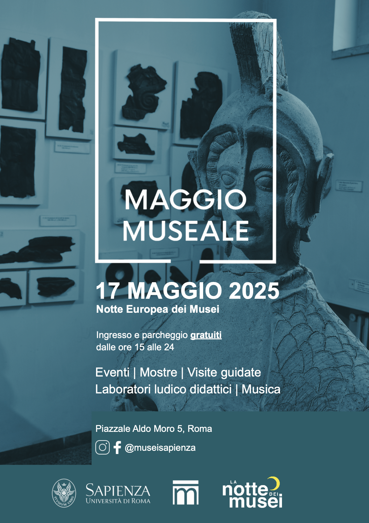 Il Polo Museale Sapienza (PMS) presenta il programma ufficiale dell’evento Maggio Museale, che si terrà sabato 17 maggio. A partire dalle ore 15.00, famiglie, bambini e giovani studenti saranno accolti in un pomeriggio dedicato all’arte e alla cultura, con attività gratuite che si protrarranno fino alle ore 24.00, confluendo nel programma della Notte dei Musei 2025.