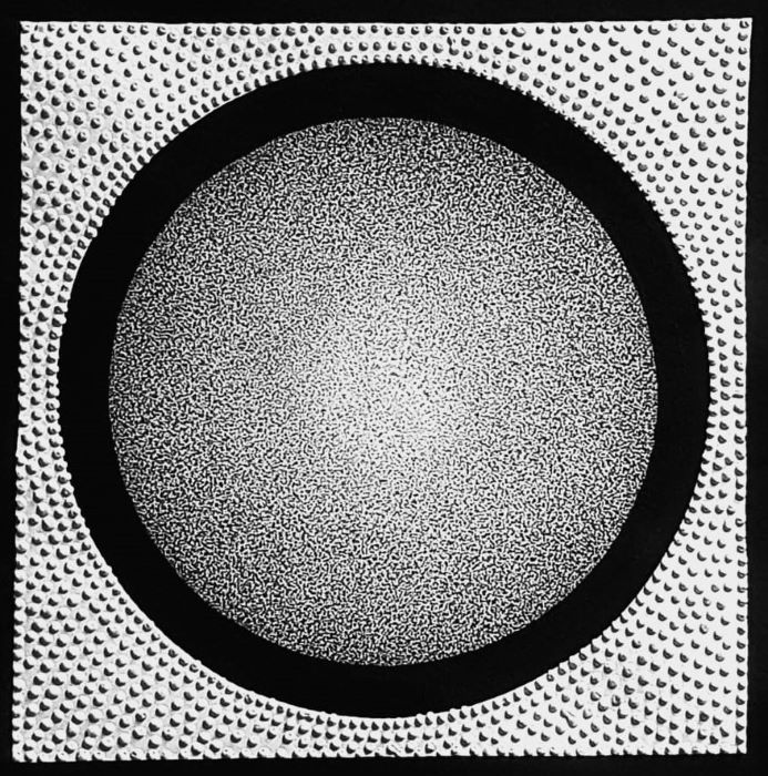 Come si legge nel testo critico: “Resmi Al Kafaji compone istintivamente strutture matematiche fissando proporzioni geometriche nell’equilibrio di pieni e vuoti, bianchi e neri, come a creare un’armonia tra le due anime che convivono dentro di lui: quella araba, della sua terra d’origine, e quella legata all’Italia, dove da decenni ha scelto di vivere. Quando Kandinsky ne Lo Spirituale nell’arte teorizza la necessità di ricercare forme che esprimano la compenetrazione tra mondo esterno ed interiorità e ne risolvano il dualismo in una compiuta sintesi, chiarisce il senso della tensione costante tra coppie di opposti, siano esse interiore/esteriore, bianco/nero, luce/ombra, notte/giorno, ecc. La visione di Al Kafaji non è mai unilaterale o parziale: le sue due nature si fondono e si armonizzano l’un l’altra. La realtà delle cose appare equilibrata, perfetta, sottile ed ineffabile come la linea del tramonto, il confine tra cielo e terra, la visione dalla terra alla luna, la perdita di gravità, i riflessi, le lacrime, le memorie nitide o affievolite, ed ancora le vibrazioni, eleganti e raffinate come un “ricamo” calligrafico kufi. Spicca l’assenza del colore, seppur nelle delicate sfumature di grigi. Che sia proprio mediante l’accordo di bianchi e neri, come in una compiuta sinfonia, che l’artista riesca a far nascere i colori dell’arcobaleno negli occhi di chi osserva?”.