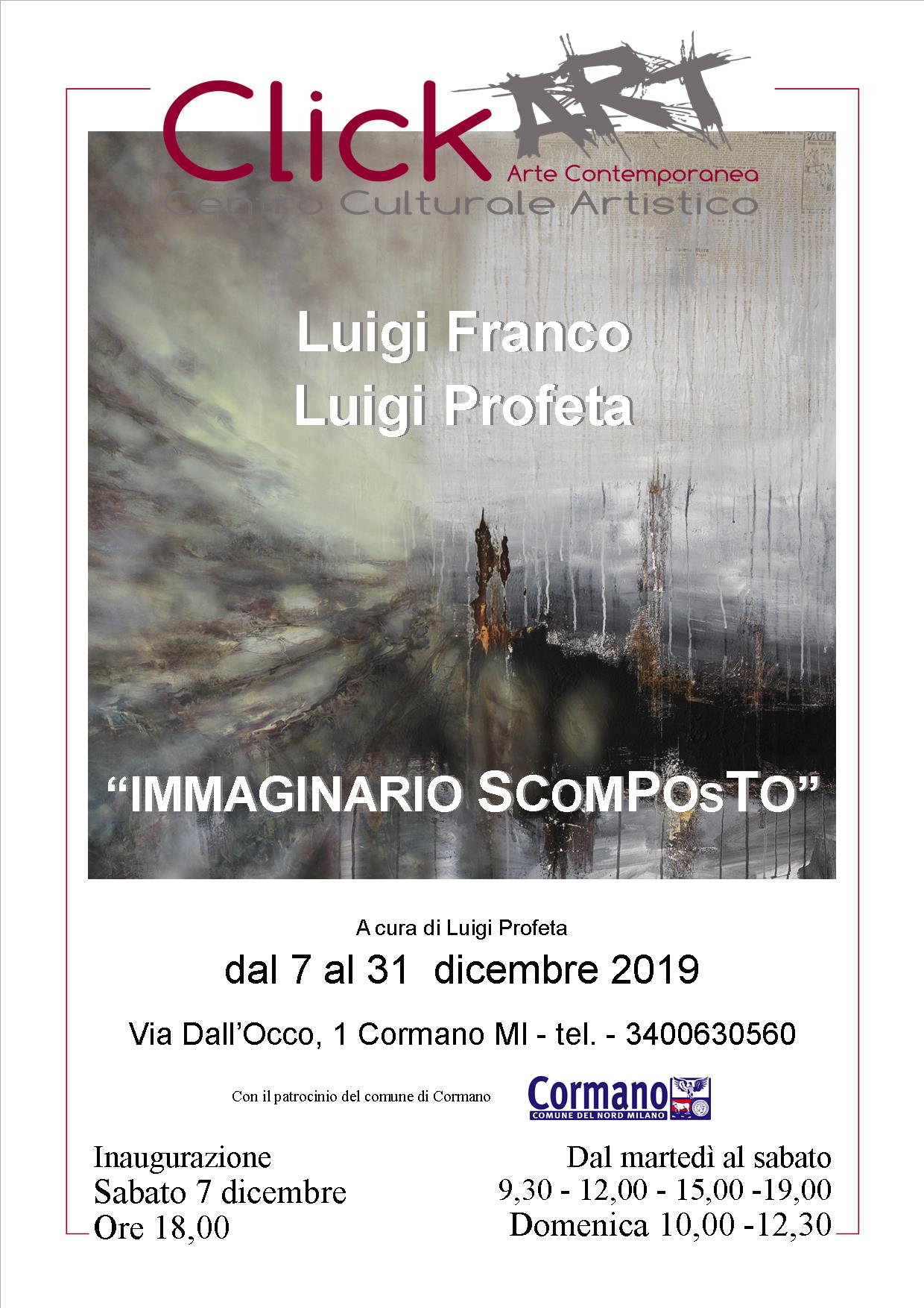 torna ai comunicati stampa Immaginario scomposto Arte via G. Dall'Occo 1, Cormano, Milano, 20032, Italia 07/12/2019 - 31/12/2019 Mostra di pittura degli artisti Luigi Franco e Luigi Profeta Scarica il comunicato