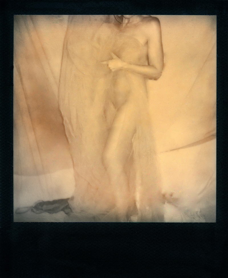 La scelta di essere contemporaneamente oggetto e soggetto dello scatto comporta l’accettazione di una sottile incontrollabilità compositiva. È uno sguardo voyeuristico su sé stessa attraverso l’occhio sterile della macchina fotografica.