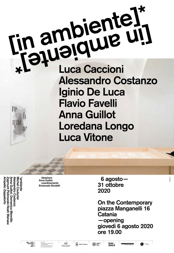 Nella mostra [in ambiente* intervengono nuove esplicitazioni sacro-profane, come il collage Evviva il papa di Flavio Favelli o l’inquietante oggetto Forever yours di Loredana Longo, per trovare un qualche dialogo linguistico con le opere preesistenti di Guillot e Zappalorto, mentre la fotografia Hypnosis di un insolito Luca Caccioni e l’installazione Indagine sulla curvatura di Alessandro Costanzo sembrano veicolare una certa dimensione popolare del sacro contrapponendosi alla visione “alta” che dell’argomento pone Zygmunt Piotrowski, o alla dimensione etica che l’opera oggettuale e video di Iginio De Luca, Sono l’automa e l’ordigno, potrebbe restituire attraverso un’imprevista sintonia con la memoria e mitologia dei luoghi espressa dalle carte di Michel Couturier, o, lateralmente, dalle operazioni di Luca Vitone e di Domenico Mennillo.