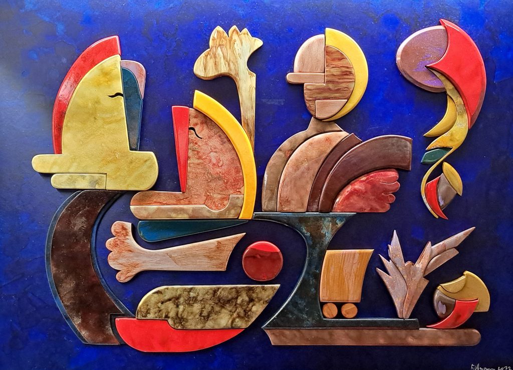 Nella Mostra Evento di Fiorenzo Mascagna le sculture e lo spazio dialogano, si raccontano, in un percorso fatto di luci soffuse che conducono lo spettatore dall'atto di vedere a quello di guardare. Le opere sintetizzano pietra, legno ed altri materiali in una struttura armonica e complessa, dove il cromatismo esprime registri della naturalità dei materiali e, allo stesso tempo, la brillante vivacità e artificiosità delle vernici.