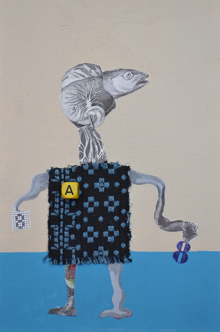 Le opere in esposizione sono collage e legni spiaggiati.