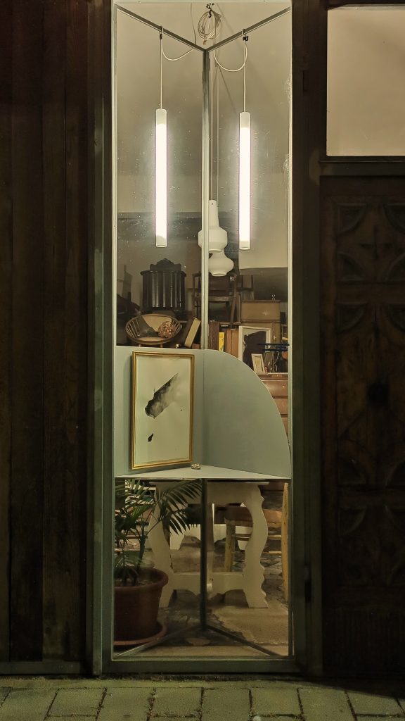 Si mostra come una miniatura, come un piccolo teatro protetto da un vetro all’interno del quale il viandante spettatore può velocemente sbirciare o lungamente osservare.