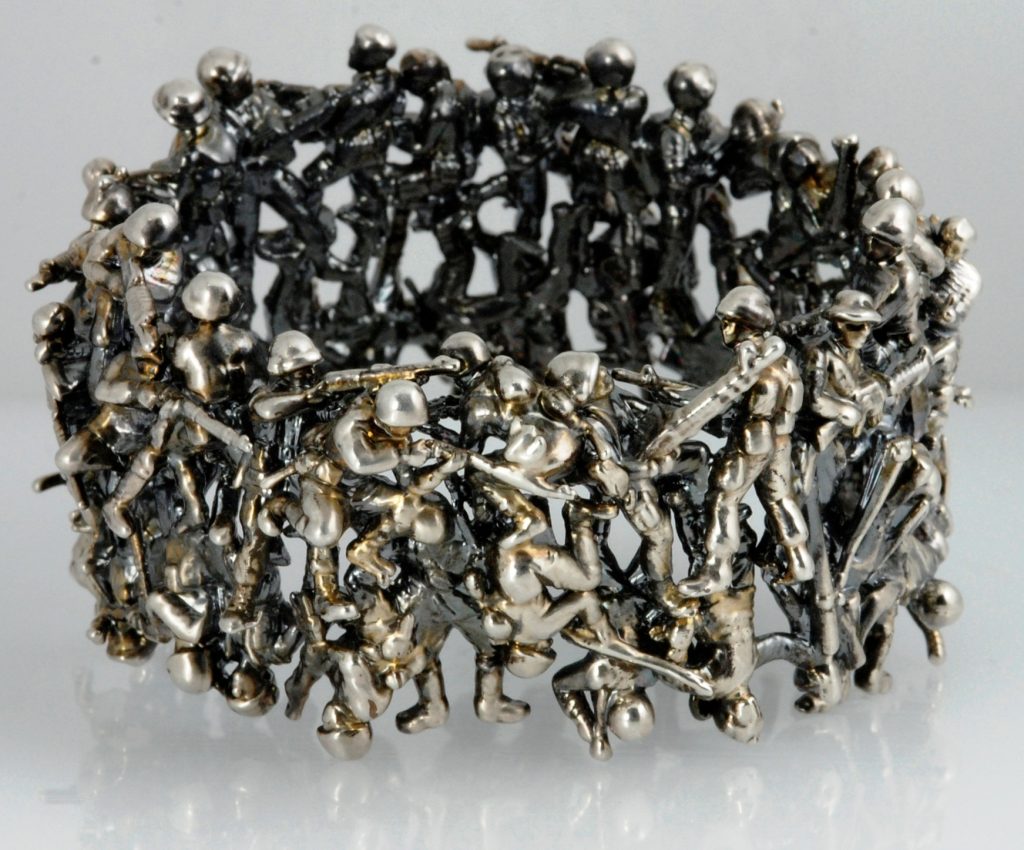 Emanuele Leonardi: realizza il "gioiello narratore" che racconta storie, spesso autobiografiche, in un garbato equilibrio tra comunicazione e poesia. Nei suoi gioielli autoportanti, scultura e gioiello si fondono creando opere uniche ed armoniose.