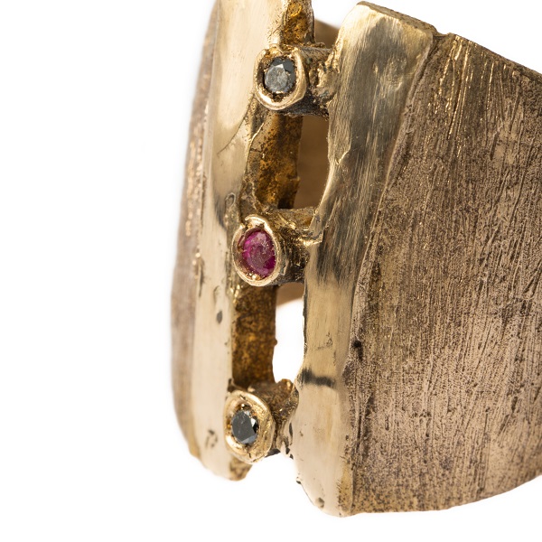 Angela Gentile: i suoi gioielli, sono come un patchwork di ricordi, di elementi raccolti e conservati, come un collage di emozioni sedimentate; riflettono il dialogo dell’autrice con elementi naturali e stati dell’animo, creando un duplice racconto.
