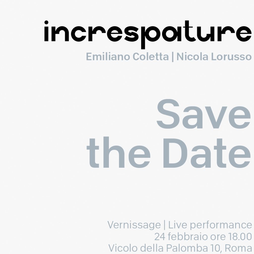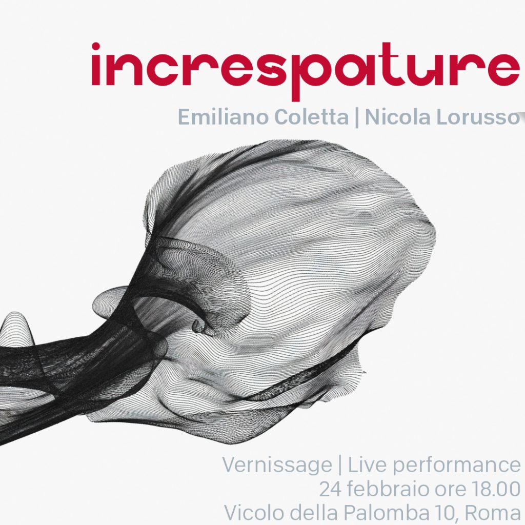 Si terrà a Roma, il 24 febbraio 2023, in un evento singolare, increspature, mostra del duo Coletta – Lorusso, per la prima volta insieme in un vernissage unico nel suo genere, accompagnato da un live musicale.