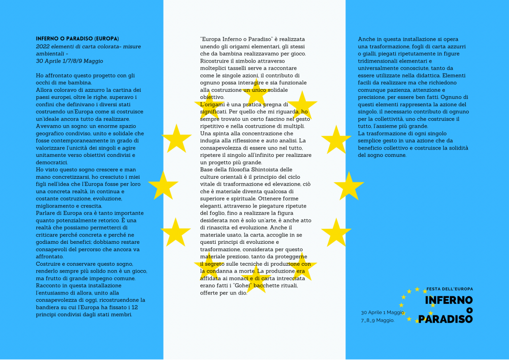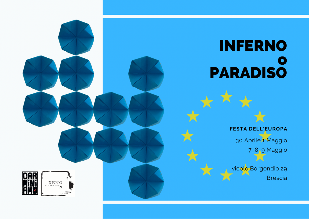 Sabato 30 aprile alle ore 16.00 si inaugura una nuova installazione del progetto XENO al civico 29 -INFERNO o PARADISO- di Antonella Bosio: una riflessione sui principi e valori della comunità Europea attraverso il ruolo del singolo. Visitabile nei giorni 30 aprile 1/7/8/9 maggio dalle 16.00 alle 18.30 nella corte di Palazzo Calini – vicolo Borgondio, 29 -