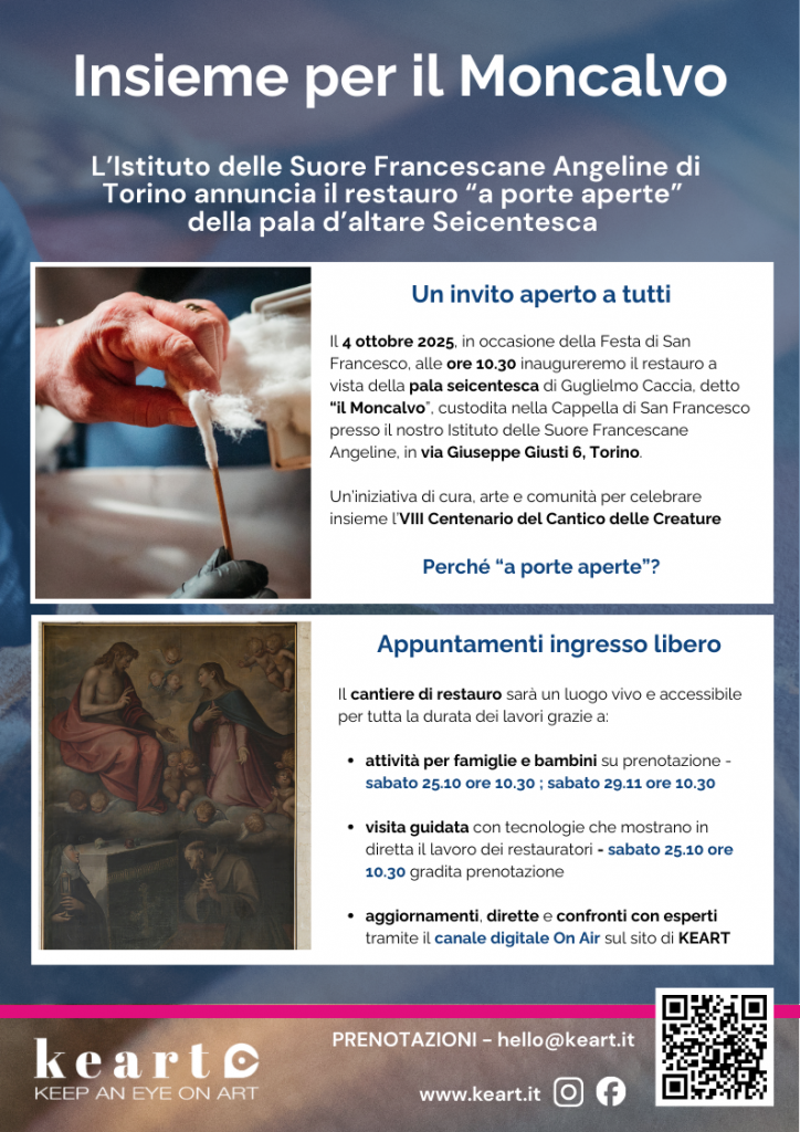 L’Istituto delle Suore Francescane Angeline, grazie al sostegno di un benefattore e alla collaborazione con l’Associazione Keart - Keep an eye on art, è lieto di presentare un nuovo progetto dedicato alla cura e valorizzazione del patrimonio artistico.