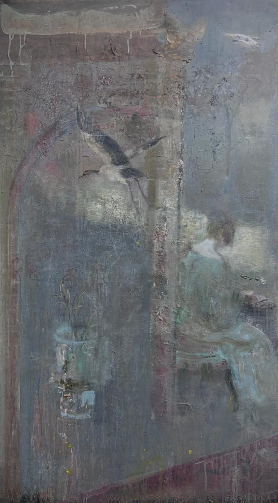 Al centro della mostra si trova una serie di dipinti che evocano l’evaporazione dell’acqua nella luce di Venezia. Scene atmosferiche e poetiche in cui tempo e memoria si dissolvono, invitando alla contemplazione.