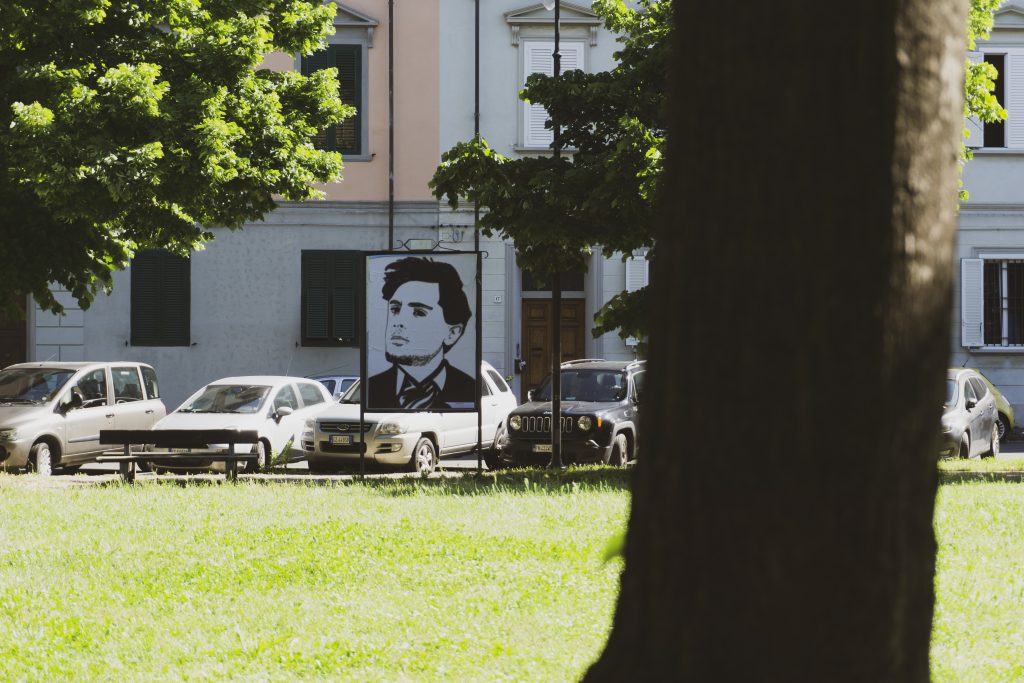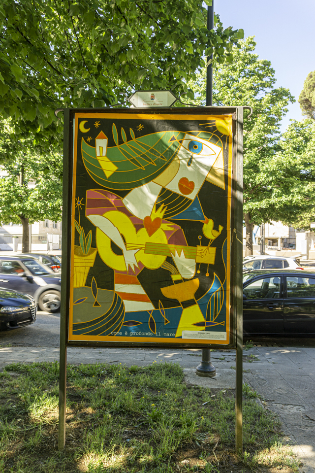 14 pannelli distribuiti sul perimetro di piazza della Vittoria incorniciano i lavori di 16 creativi che con fotografie, disegni, collage ed elaborazioni grafiche hanno trasformato una semplice piazza in uno spazio espositivo.