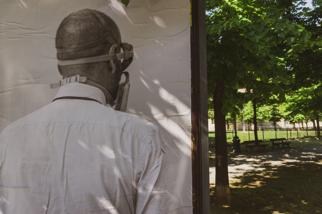 Molti i messaggi che raccontando il lockdown: un volto con una maschera antigas, una locandina cinematografica che parla della difficoltà di affrontare il virus, ma anche immagini di persone che camminano senza incontrarsi mai, ritratti di volti noti o sconosciuti e tanto altro ancora.