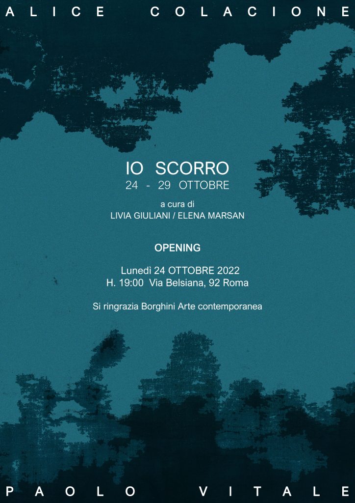 Come esploratori di un cosmo in divenire, la pratica pittorica di Alice Colacione e Paolo Vitale, è il frutto di una ricerca senza confini, guidata da una coscienza sensoriale spogliata della razionalità. Il linguaggio dei due artisti si intreccia in una visione comune tesa all'esplorazione della materia nei suoi limiti e risonanze, espressa tramite modalità operative contrapposte eppure affini, declinate su tela, tessuti e carte pregiate. Elementi porpora e consistenze acquose daranno forma al mondo misterico svelato dai versi omerici, in un percorso di scoperta e trasformazione che trova la sua sintesi nelle parole io scorro.