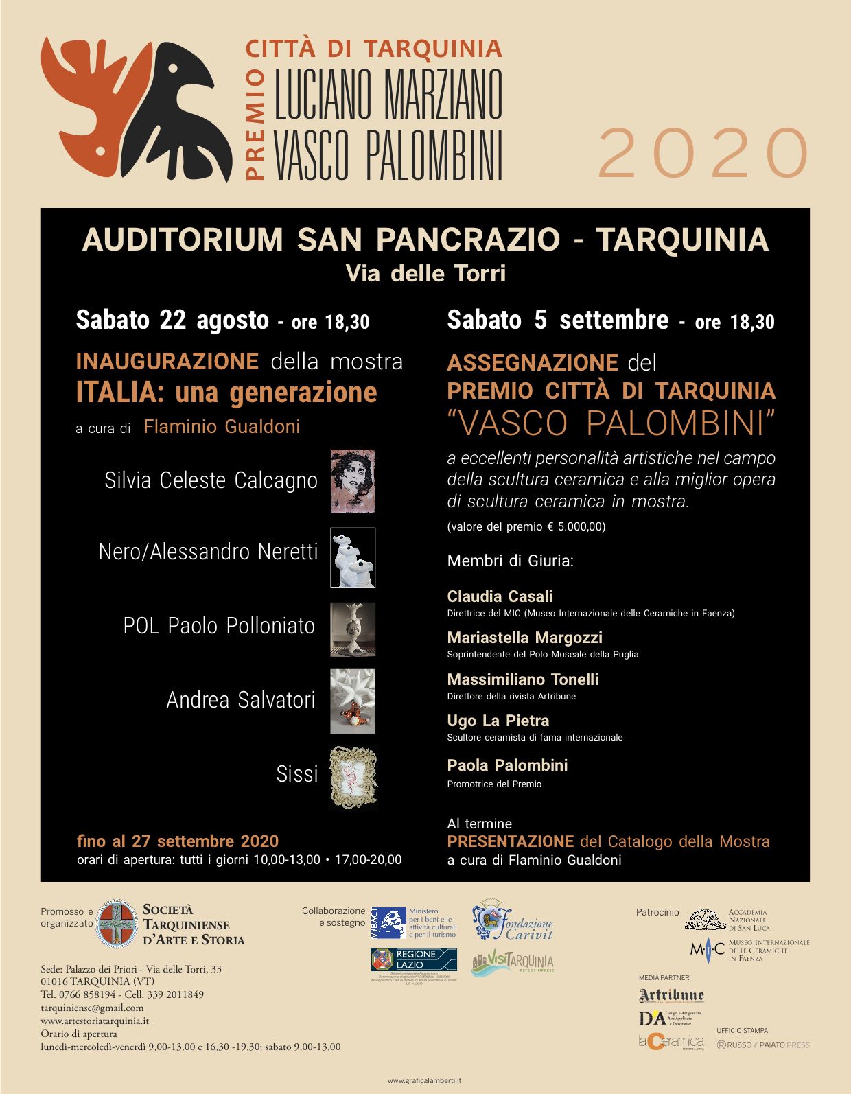 S.T.A.S.presenta ITALIA:UNA GENERAZIONE a cura di Flaminio Guardoni, mostra cornice del Premio Città Di Tarquinia per la scultura ceramica dedicato a “Vasco Palombini”.