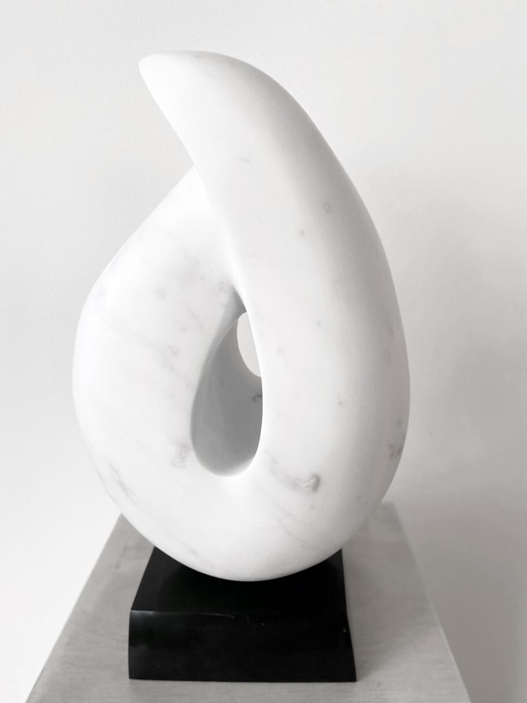 Formatasi negli Stati Uniti e da diversi anni residente in Svezia, a Stoccolma, JILL HÖJEBERG è in realtà un’artista profondamente legata al nostro Paese, dove si reca periodicamente per lavorare alla sorgente di alcuni dei suoi materiali di vocazione, primi fra tutti il marmo bianco di Carrara. Ripartendo dalla grande attenzione per l’uomo della tradizione marmorea classica e rinascimentale, Höjeberg ne trasforma e rinnova completamente le forme e gli intenti, alla luce di uno sguardo pienamente contemporaneo. L’artista abbandona l’antropomorfismo dell’opera e ricerca l’essenzialità dell’umano all’interno di geometrie e movimenti della materia totalmente emotivi. Non più soggetti statuari, distanti e impassibili ma forme empatiche, femminili e pensate per il contatto con lo spettatore. Difficile non avvertire una consonanza emotiva con le sue opere: sono intrecci, con pieni e vuoti, per contenere i sentimenti di chi si avvicina loro; abbracci non più fatti di muscoli e di braccia tese, ma di movimenti morbidi e sinestetici.