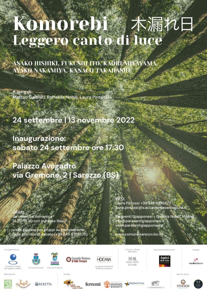 Komorebi ⽊漏れ⽇ leggero canto di luce, è una mostra d’arte contemporanea collettiva a cui partecipano cinque artiste giapponesi (Asako Hishiki, Fukushi Ito, Kaori Miyayama, Ayako Nakamiya, Kanako Takahashi) da tempo residentio in Italia.