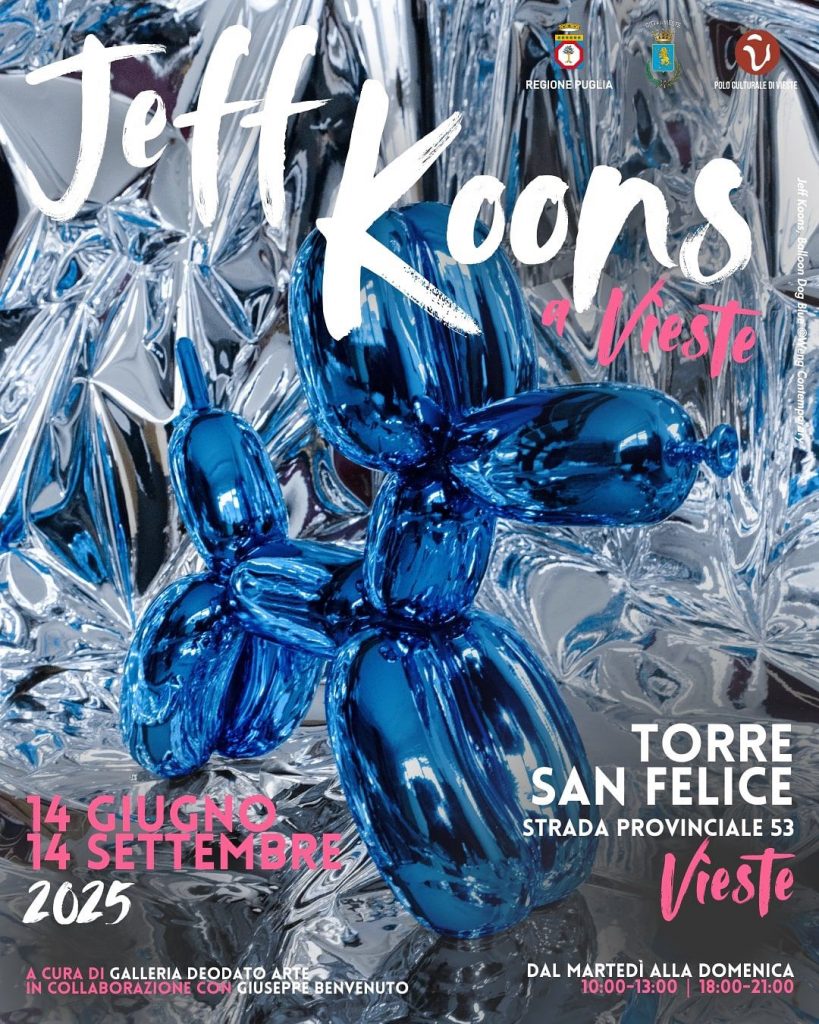 Il Comune di Vieste, in collaborazione con Giuseppe Benvenuto, è lieto di annunciare “Jeff Koons a Vieste”, una mostra a cura della Galleria Deodato Arte, dedicata a uno degli artisti più iconici e influenti dell’arte contemporanea. L’esposizione sarà ospitata nella spettacolare Torre San Felice, dal 14 giugno al 14 settembre 2025, con l’inaugurazione che si terrà giovedì 12 giugno alle ore 19,00, con l’intervento del Sindaco di Vieste Giuseppe Nobiletti e l’Assessore alla Cultura Graziamaria Starace.
