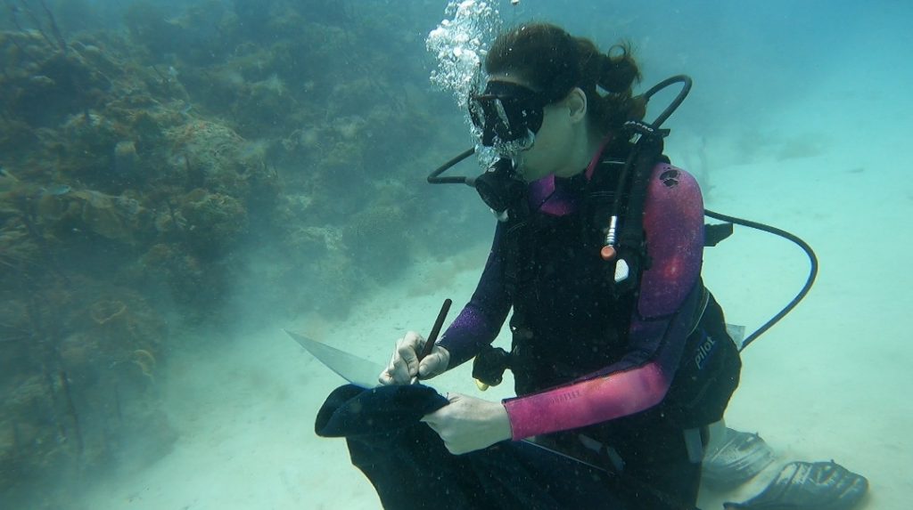 Krillantix (Antonella Magliozzi), realizza le sue incisioni lavorando direttamente in immersione a 12 metri