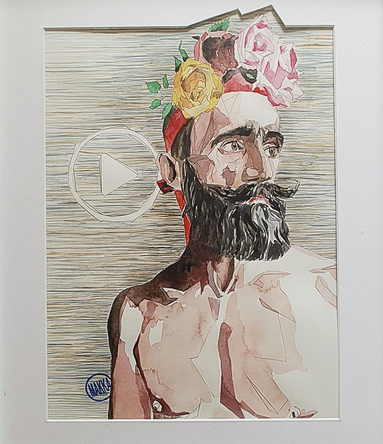 Il percorso espositivo si articola al piano terra con un’istallazione intermediale di Marco Brama che dialoga con l’intelligenza artificiale, continuando in quello superiore con la serie di acquerelli di Paolo Maccari pervasi di ironia, contaminazioni e citazioni, passando per il percorso intimo permeato di sentimenti e vibrazioni azzurre di Carla Paiolo.