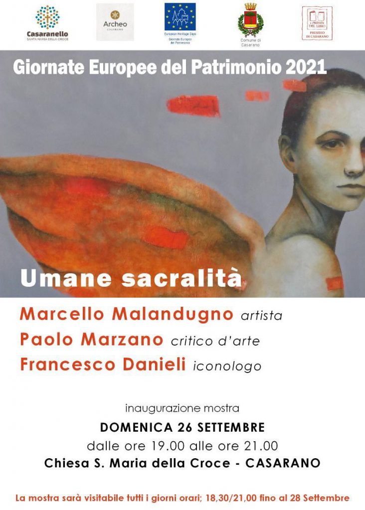 Domenica 26 Settembre dalle ore 19 sempre all’interno della Chiesa sarà inaugurata la mostra dell’artista Marcello Malandugno dal titolo ‘Umane sacralità’ a cura di Cinzia De Rocco e del critico d’arte Paolo Marzano e con l’intervento del prof. iconologo Francesco Danieli. La mostra sarà visitabile fino al 28 Settembre dalle ore 18,30 alle 21,00.