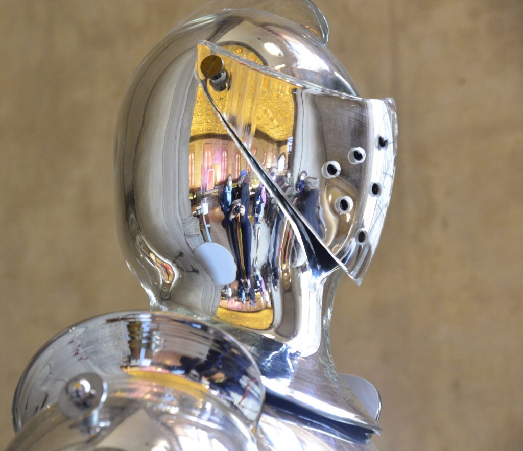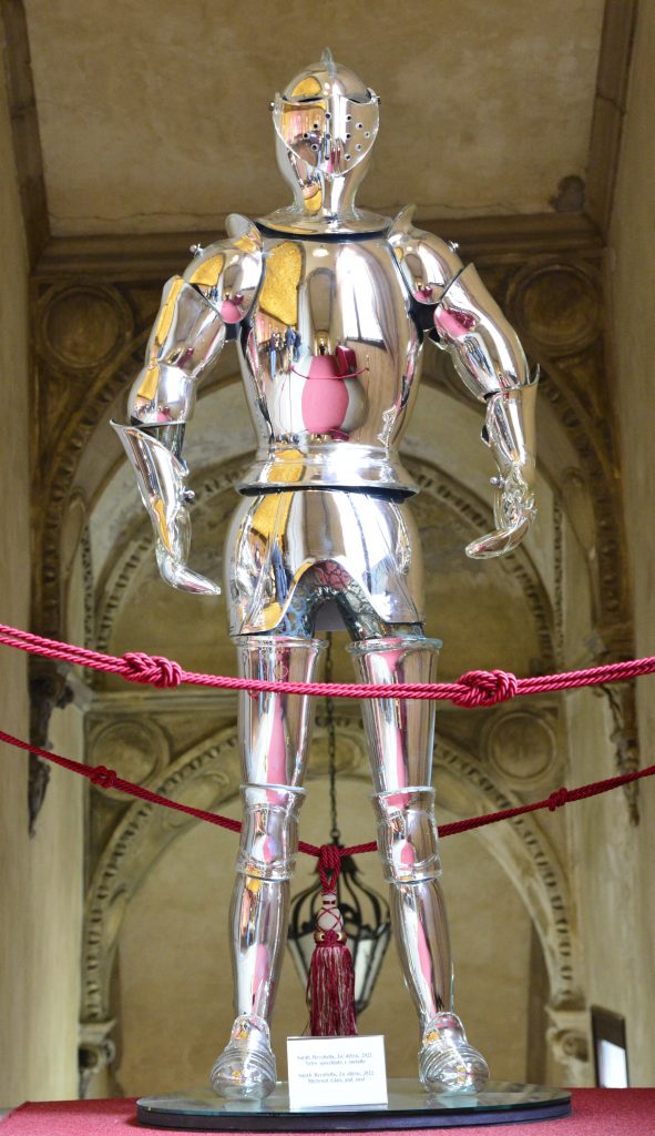 Presso la Scuola Grande di San Marco, è in esposizione da domani 21 aprile l’ultimo lavoro di Sarah Revoltella, «La difesa», un’armatura a grandezza naturale realizzata in vetro nell’isola di Murano. L’opera costituisce l’ultima tappa di un ciclo iniziato anni fa sul tema del disarmo, e segue la performance «Io combatto» e l’arazzo «Stelle e Conflitti». L’esposizione, a cura di Monica Trigona, è visitabile fino al 18 settembre.