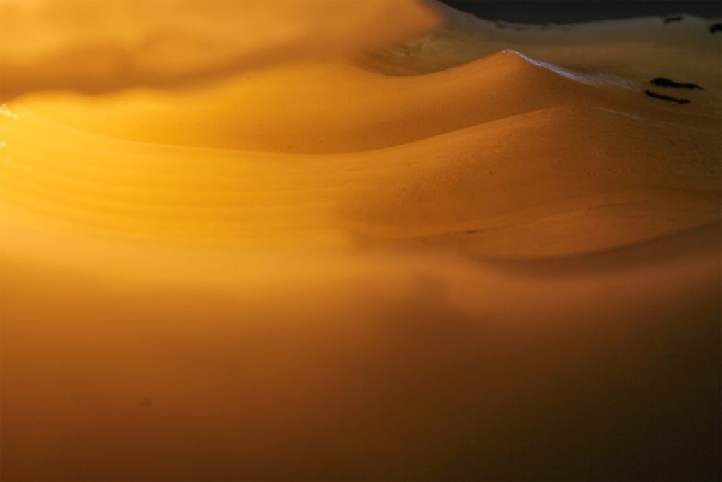 la cera sciogliendosi segue il flusso della gravità in modo casuale. La fiammella che flebile e silenziosa brucia verticalmente, taglia la cera e genera uno squarcio irregolare al centro dell’opera, spiraglio visivo che permette di guardare attraverso. Per l’opera il fuoco è generatore di vita e contemporaneamente di distruzione, poiché agisce liquefacendo la materia. Con questa scultura performativa, Col intende rovesciare la dicotomia distanza dall’opera e percezione dell’opera, sovvertendo la solita “lontananza di convenzione” tra opera e spettatore, per cercare di riavvicinarlo il più possibile. Infatti, per vedere oltre la feritoia il corpo deve necessariamente approssimarsi alla parete, solo così entrerà
