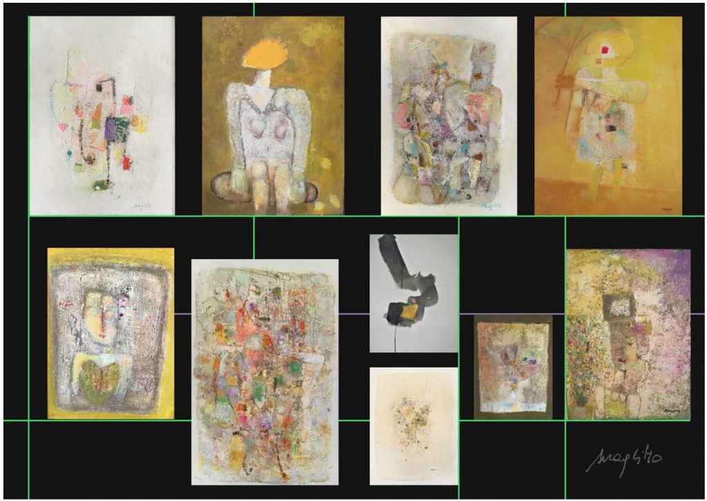 La cauda pavonis del punteggio cromatico e del relato formale del Maglitto è la fusione degli iridati orizzonti prospettici, la partecipazione dell’io alla totalità del Sé, il labirinto viscerale dal nero all’oro di conoscenza.
