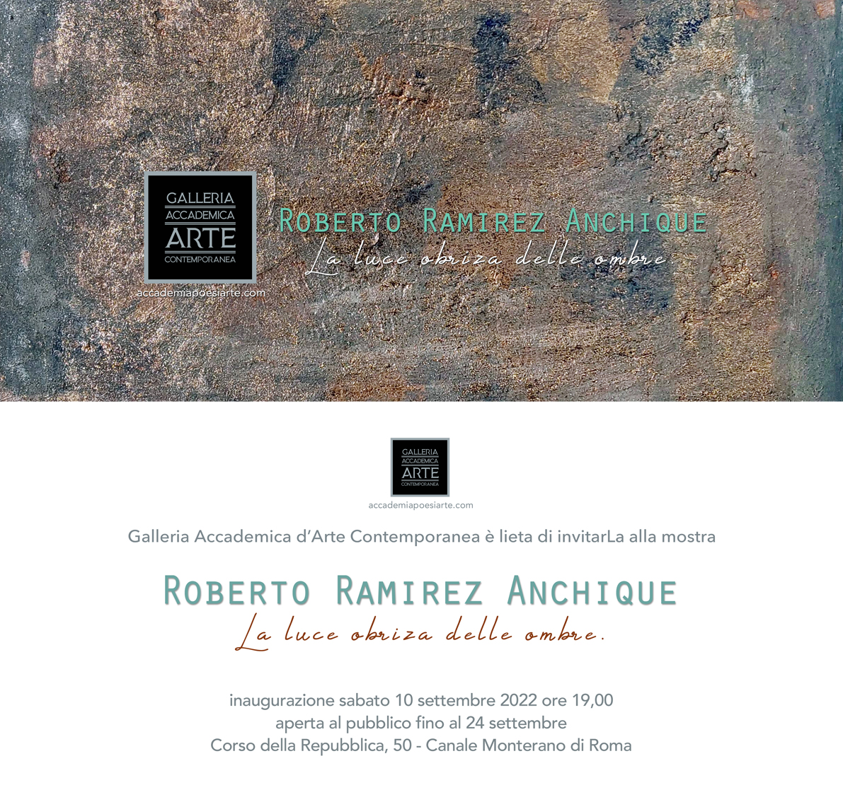 inagurazione sabato 10 Settembre 2022 ore 19:00 presso la Galleria Accademia d'Arte Contemporanea in Corso della Repubblica, 50 - Canale Monterano di Roma